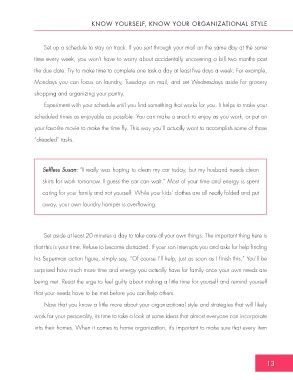 Set aside at least 20 minutes a day to take care of your own things. The important thing here is